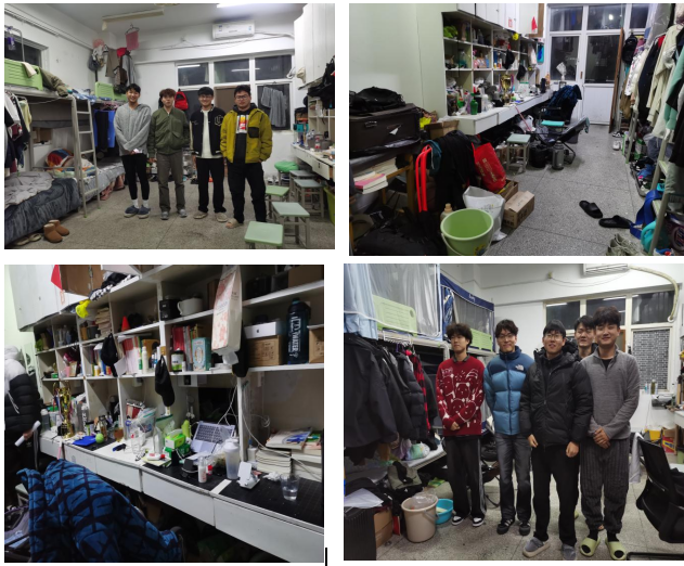 此次活动由辅导员史由甲带领,班长高畅、团支书潘玉飞、各宿舍寝室长组成巡查小组,深入各个宿舍,本次安全检查共涉及八个宿舍,5栋211、213、214、215、401、402、501、25栋403,并针对上次公司检查特意指出的5栋501宿舍进行重点检查与排查。寝室卫生整体较上次查寝后有所改善,但是仍有不足。