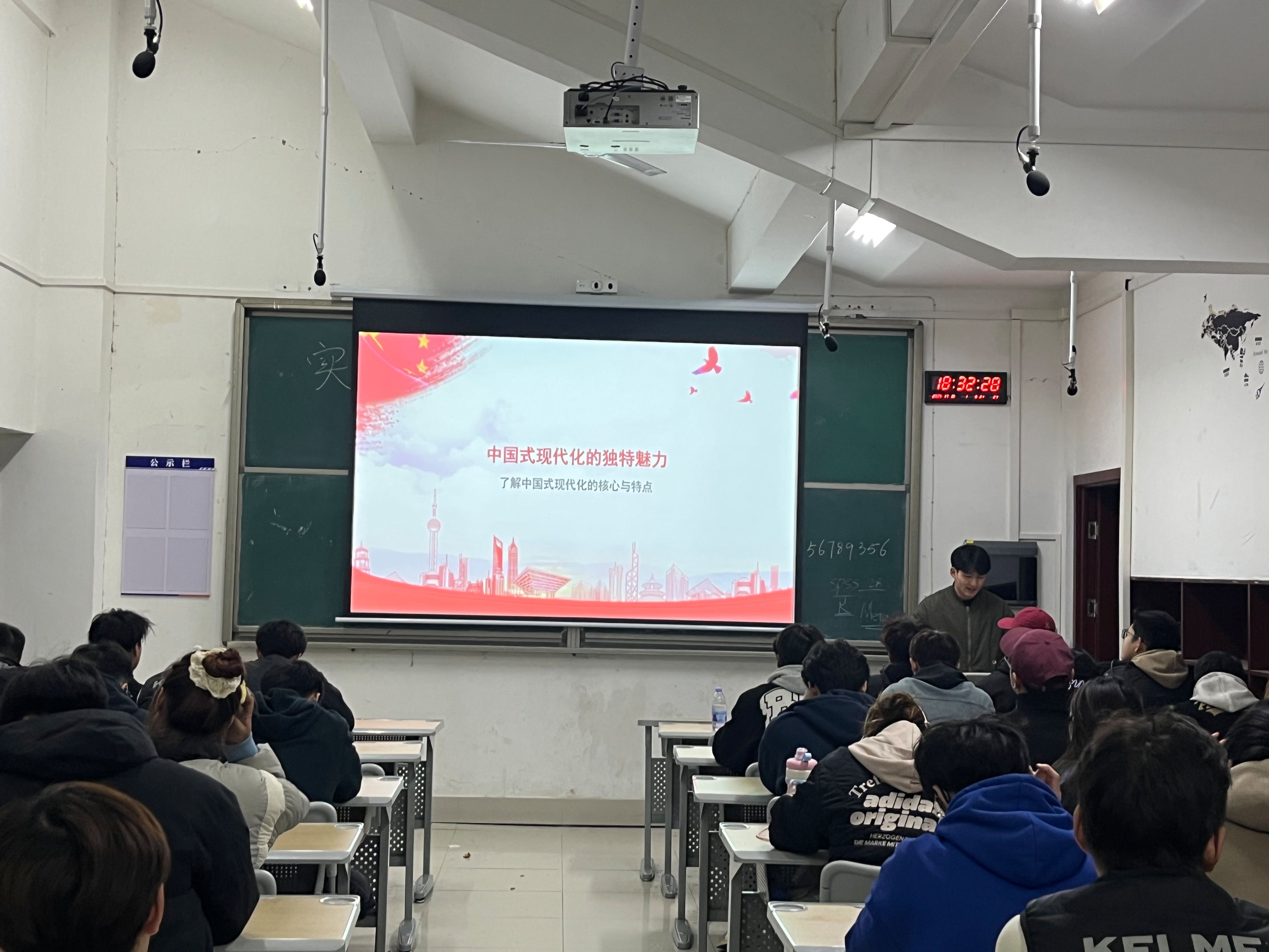 班会在庄严的国歌声中开始。随后,党员青年宣讲团的成员们依次登场,他们结合自身学习体会与体育专业特色,用朴实的语言、真挚的情感和专业的视角,将宏大的主题转化为身边可知可感的内容,赢得了现场同学的阵阵掌声。在互动环节,还特别设置了别开生面的“现代化热词接龙”活动。