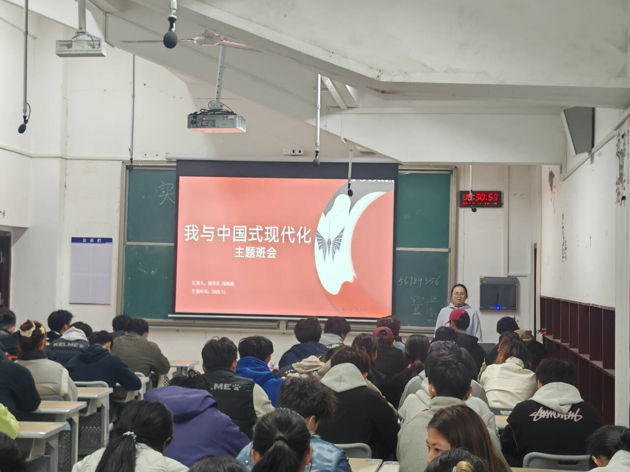 为深入学习贯彻习近平新时代中国特色社会主义思想,引导员工深刻理解中国式现代化的核心内涵,增强对国家发展战略的认同感与使命感。11月10日-11日,william威廉英国官网2023级在多媒体教室开展“我与中国式现代化”主题班会。会议由辅导员陈海燕主持,全体员工参加。