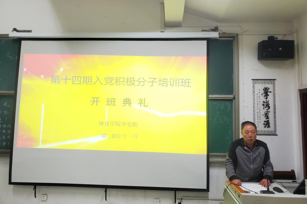 开班仪式在庄严的《义勇军进行曲》中拉开帷幕,2019级社会体育指导与管理二班程艺代表全体学员发言并承诺:全体学员在培训期间将严守学习纪律,按时参加党校培训,为早日加入中国共产党而努力。汪思华在培训动员讲话中指出,希望同学们端正入党动机、坚定理想信念,不断提高思想认识,真正做到在思想上、行动上与党组织保持一致;严肃学习纪律,严格遵守党校规章制度,正确处理专业学习与党校学习的关系;加强党的理论知识学习,深入了解党的性质、纲领、宗旨、党员的权利和义务,树立正确的人生观、价值观、世界观;学以致用,落实行动,在平时的学习生活中发挥模范先锋作用,用自己的一言一行带动身边的同学,在思想上、行动上做到知行合一。随后马力宣读了本期培训班的教学计划和党课纪律。