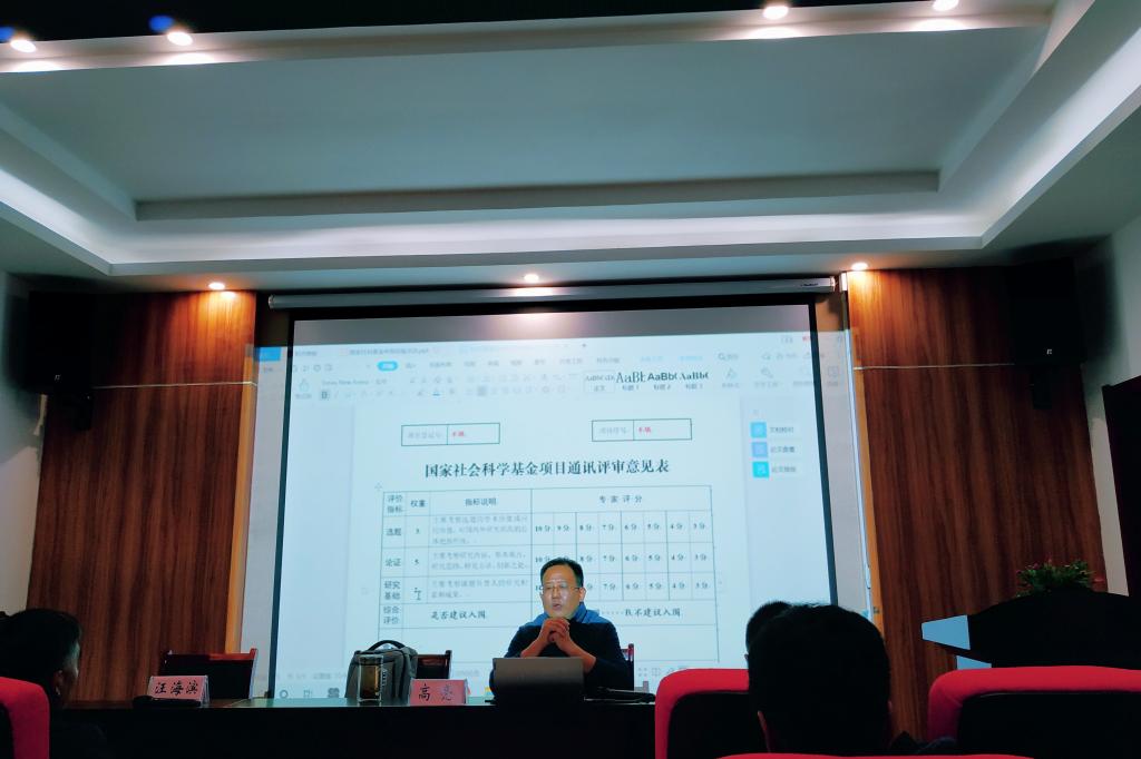 高亮结合自身成功申报国家社科基金项目、承担国家社科基金项目评审专家的丰富经验,围绕选题依据、研究内容、思路方法、创新之处、预期成果、研究基础、参考文献等7个方面,对如何撰写、构思国家社科基金项目申报书做了深入剖析。在讲座中,为使参会教师能深入理解,高亮运用申报成功和失败的具体案例仔细解读了项目申请书活页各部分填报的主要内容和注意事项,向参会教师分享了一些申报技巧和方法。他还从评选专家的角度,高屋建瓴的提出了许多建议,解答了国家社科基金项目申报过程中的各种问题,使参会教师受益匪浅。
