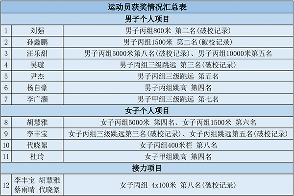 8月17-25日,安徽省第十五届运动会高校部田径比赛在滁州职业技术公司举行,公司田径队共收获2银、2铜、二等奖7项、三等奖8项的好成绩,同时打破九项校田径运动会记录。