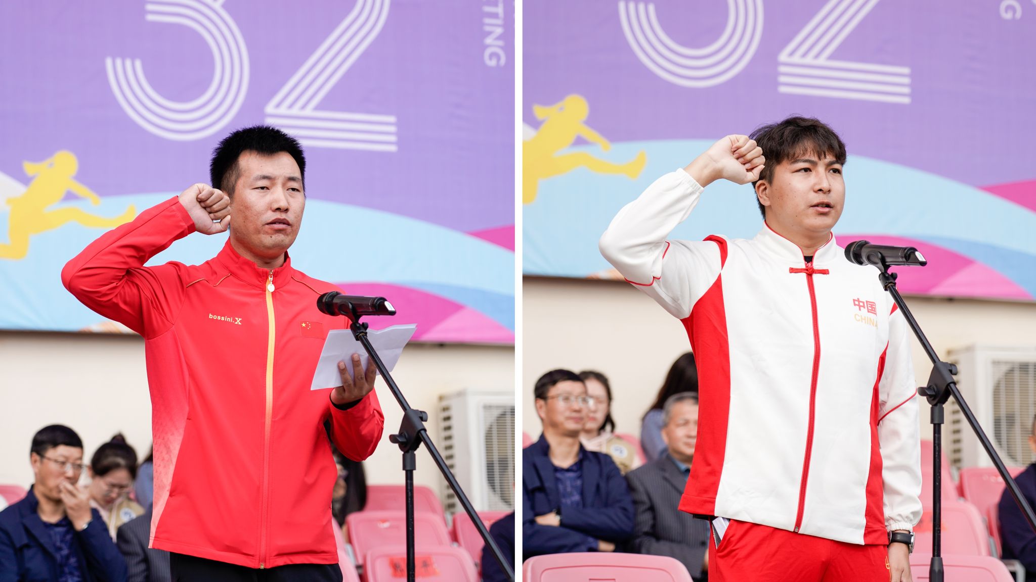 裁判员代表李俊老师与运动员代表范春雷同学分别代表赛事裁判员和运动员宣誓,庄严承诺维护比赛公正、遵守比赛规则。