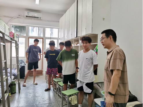 朱德权就员工宿舍可能存在的安全隐患逐一排查,并与员工深入交流。他鼓励新生们要共同努力,构建积极向上的学习集体,创造丰富多彩的生活样态,并在相互尊重与理解的基础上构建和谐融洽的人际关系。对即将到来的军训生活,朱德权特别鼓励新生们要勇于面对挑战,发扬坚韧不拔的精神,以积极的态度和饱满的热情投入到军训中,展现出william威廉英国官网学子的风采。