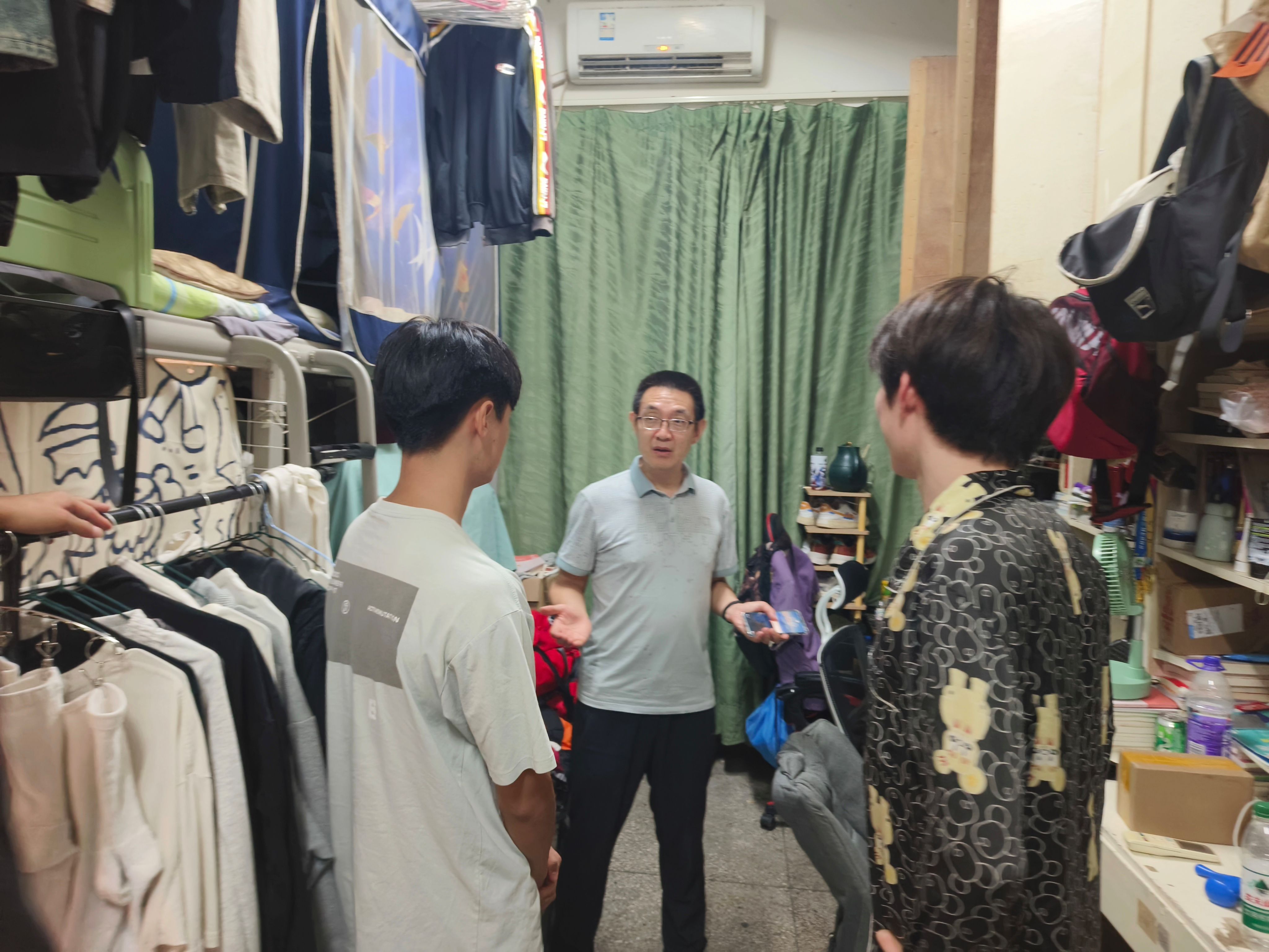 检查期间,汪海滨与同学们亲切交谈,询问他们的暑期生活情况与新学期的学习计划,加强对员工思想动态的了解。最后,他叮嘱员工们要提高安全意识、注意寝室防火防盗、保持良好寝室卫生环境,养成健康生活习惯。同时要及时调整心态与生活作息,以积极饱满的精神状态投入新学期的生活和学习中去,积极向上,努力取得更大的进步。