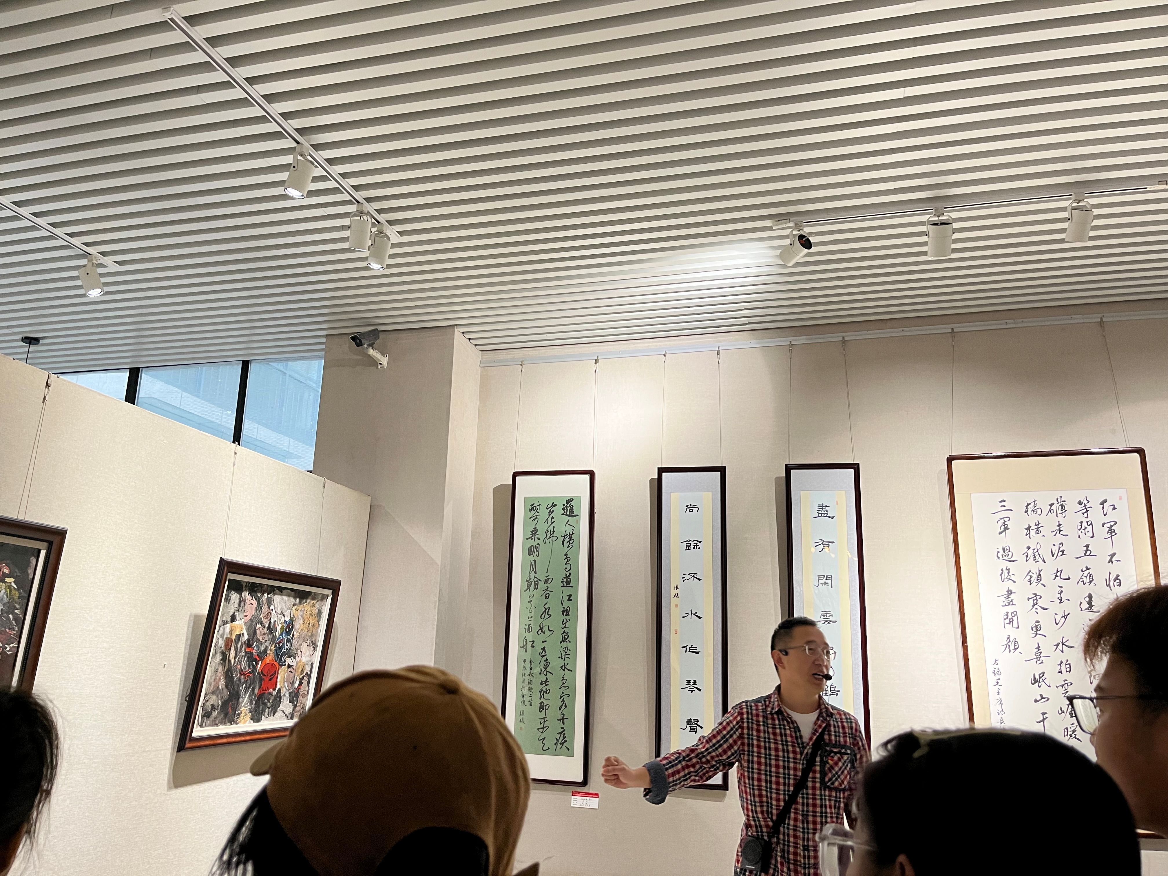在参观的过程中,党员们仔细欣赏每一幅画作,认真聆听艺术与教育公司党委副书记李俊明的介绍,不时驻足交流心得。此次展览汇聚了艺术与教育公司众多师生的精心之作,主题鲜明,内容丰富,形式多样,既有大气磅礴的山水画,还有充满创意的现代艺术作品。每一幅作品都饱含着艺术与教育公司师生对祖国的深情厚意和对美好生活的向往,充分展示了艺术与教育公司师生的艺术才华和创作热情。
